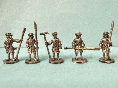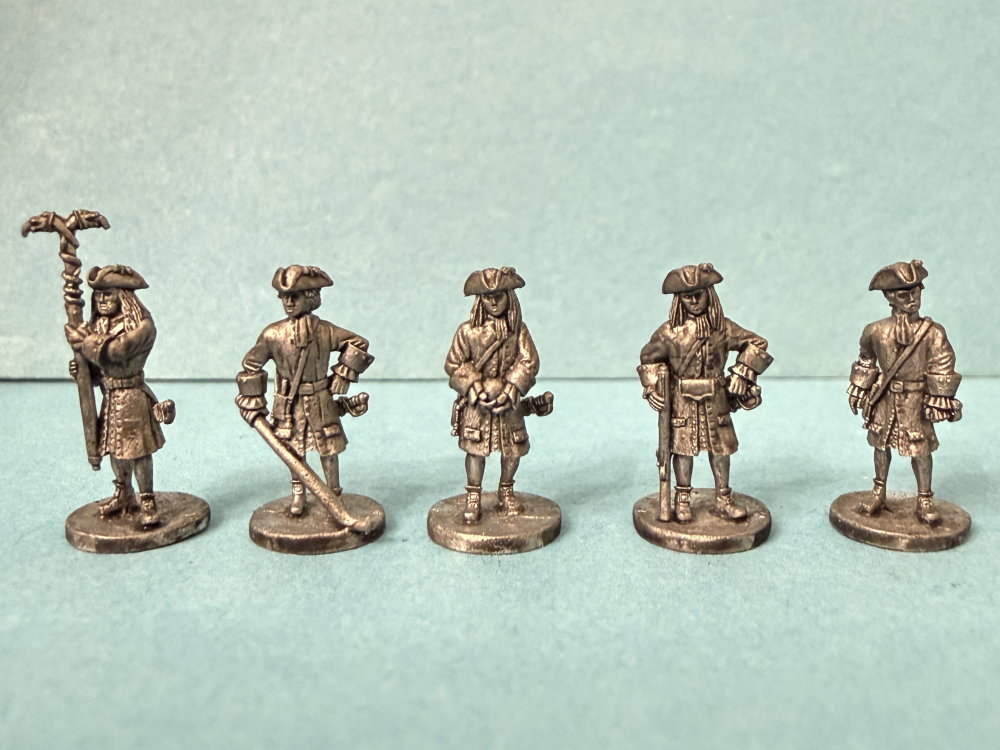 This pack contains two 12-16 pounder cannon with ten different crewmen, two resin powder barrels and two cannon ball stacks.